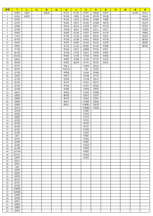 11월 9일(일) 휴일 자습 명단