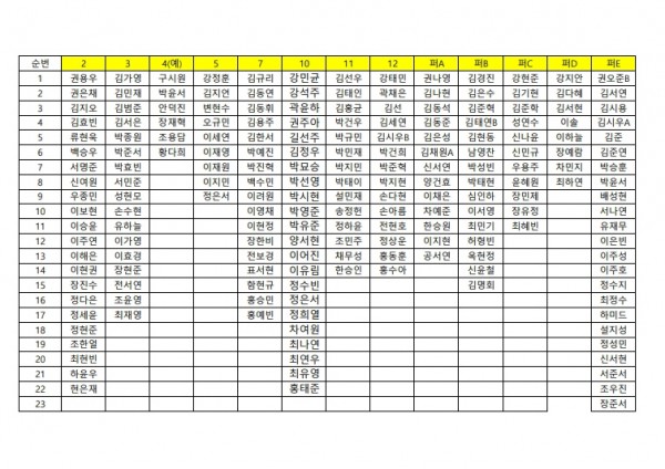 9월 14일(일) 휴일 자습 명단