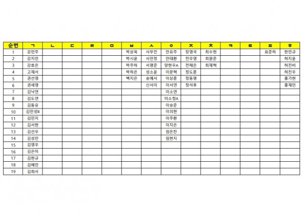 2월 22일(일)휴일 자습 명단(종합/퍼플반)가나다순