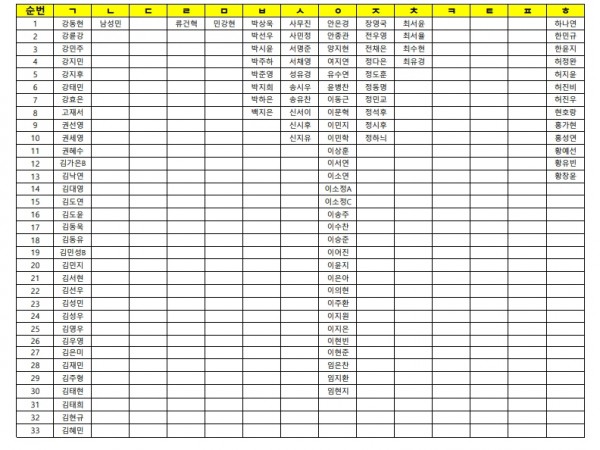 3월 15일(일)휴일 자습 명단(종합/퍼플반)가나다순