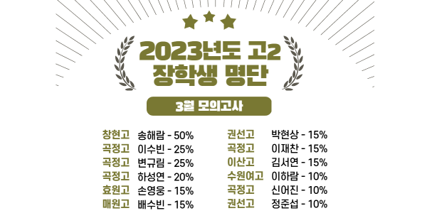 2023 고2 3월 모의고사 장학생 명단