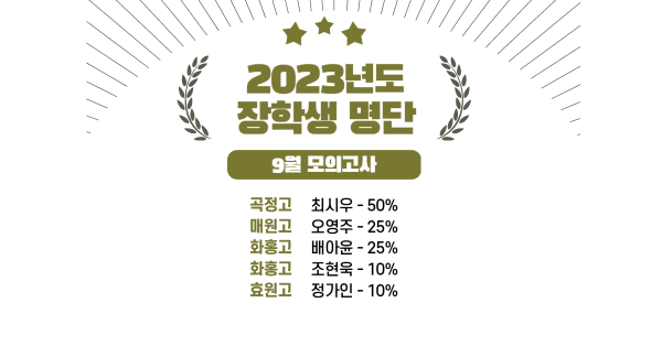 2023 고1 9월 모의고사 장학생 명단