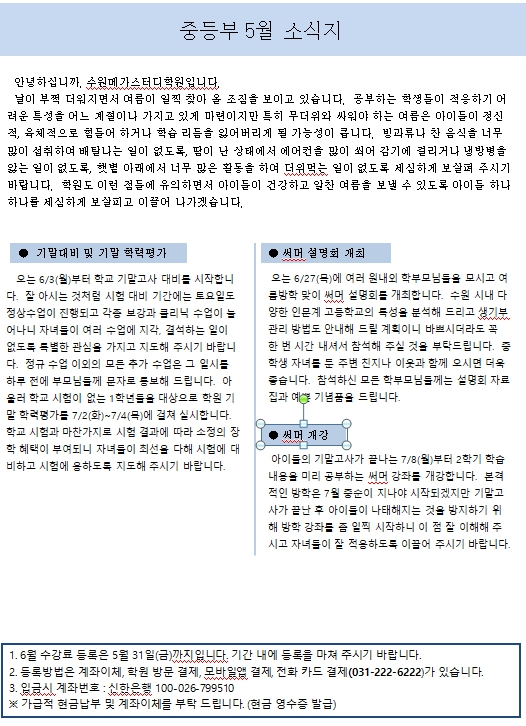 중등부 학원소식