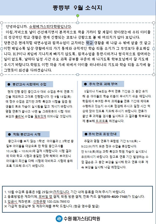 중등부 학원소식