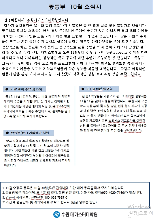 * 11월 중등부 가정통신문입니다.