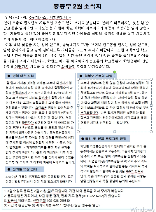 * 2월 중등부 가정통신문입니다.
