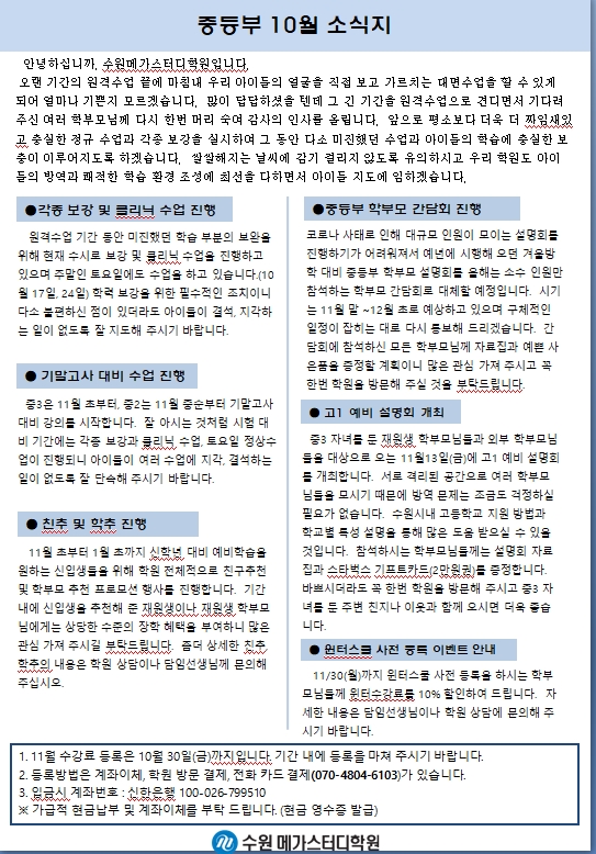 2020년 10월 소식지(가정통신문)