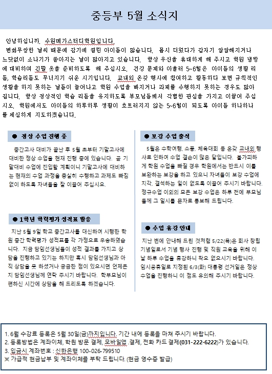 중등부 5월 소식지(가정통신문)