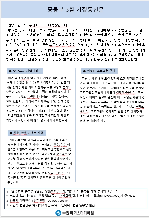 2026년 중등부 3월 소식지(가정통신문)