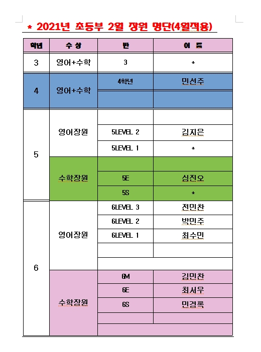 초등부 학원소식