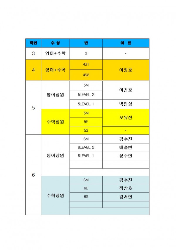 * 2020년 초등부 5월 장원 명단