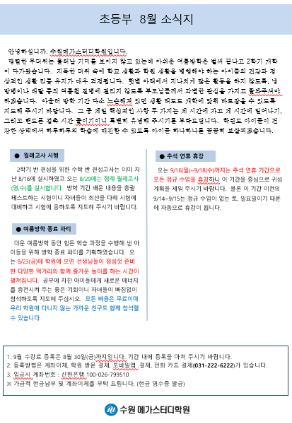 8월 가정통신문