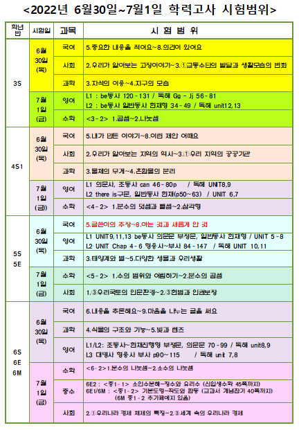 기말 학력평가 일정