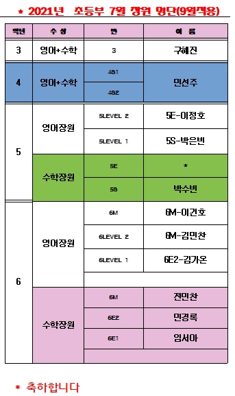 7월 학력평가 장원