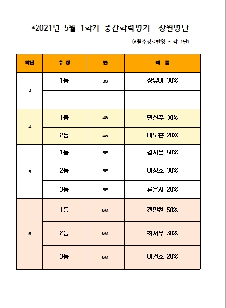 5월학력평가 장원명단
