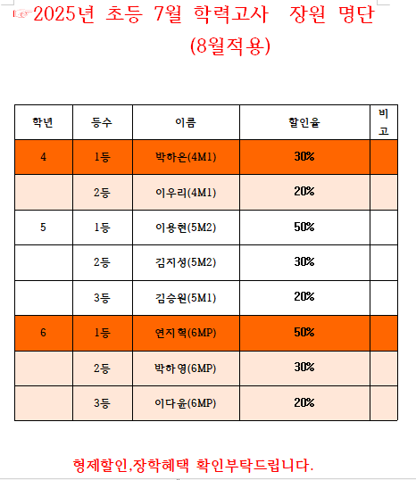 7월 학력평가 장원