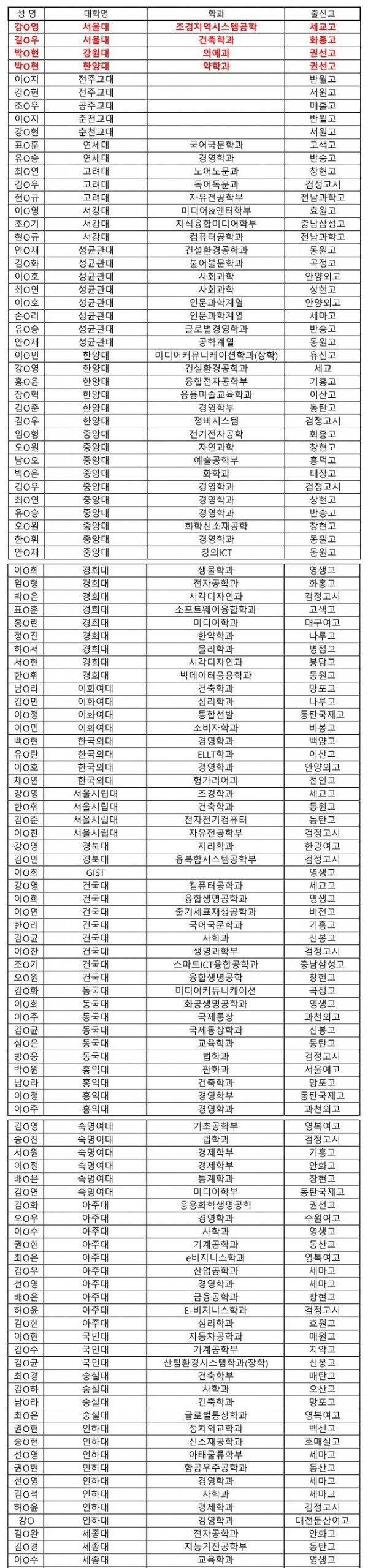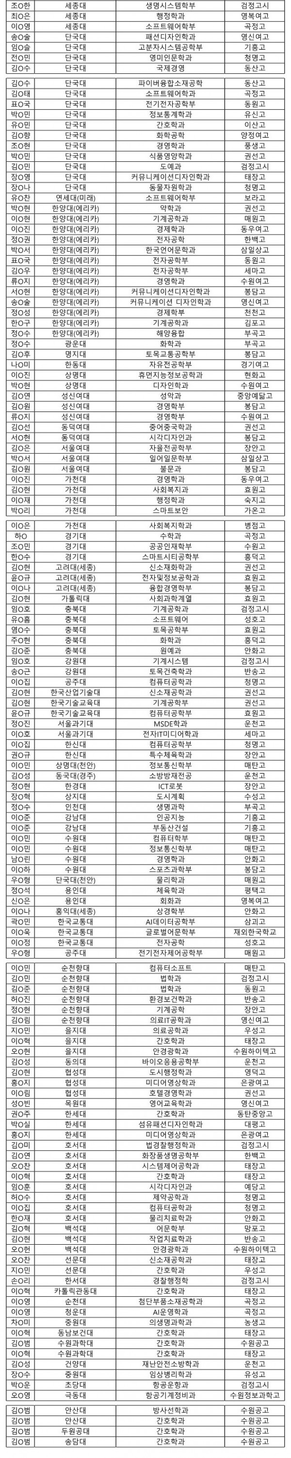 2022학년도 대입 합격자 명단