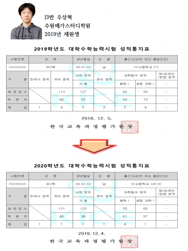 그런 저에게 수원메가스터디의 실전위주의 수업 설명과 선생님과의 질문 피드백은 도움이 되었는데, 특히 수업시간에 같은 반 친구들의 질문을 들을 수 있다는 점이 저에게 큰 도움이 되었습니다. 왜냐하면, 제가 전혀 생각하지 못한 관점에서 파고들거나, 쉬운 문제라고 생각해 질문 하지 않고 넘어간 문제에서 제가 놓쳐버린 중요한 부분을 들을 수 있었기 때문입니다. 즉 저에게 수업시간은 문제에 대해 정말 완벽히 이해했는가를 점검하는 가장 귀중한 시간이었습니다.