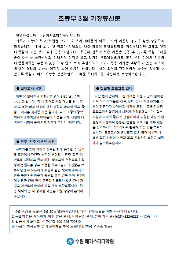 초등 [초등] 3월 가정통신문