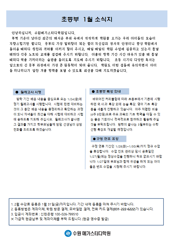 초등 [초등] 1월 가정통신문