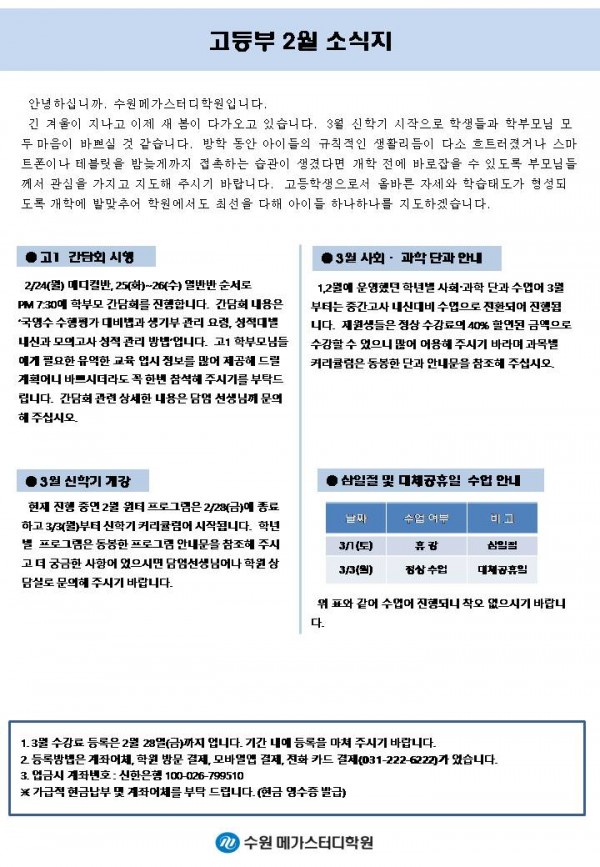 고등 [고등] 2월 가정통신문
