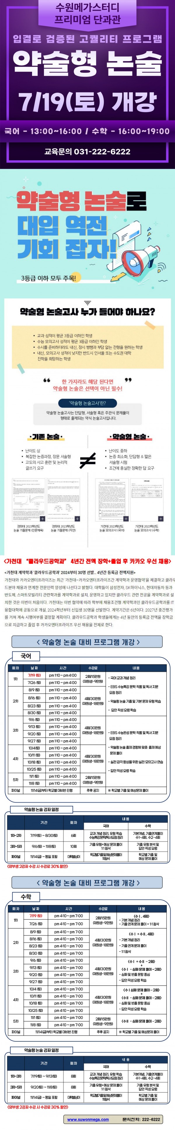 공지 2026 대입 약술형 논술 대비반 개강 페이지 정보 작성자 최고관리자 작성일 25-05-13 12:35 조회 1,644회 댓글 0건 본문 2026 대입 약술형 논술 대비반 개강