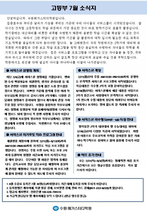 고등 [고등] 7월 가정통신문