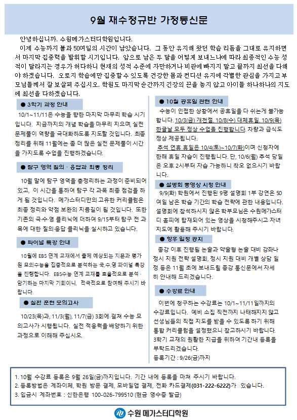 재수 [재정] 9월 가정통신문