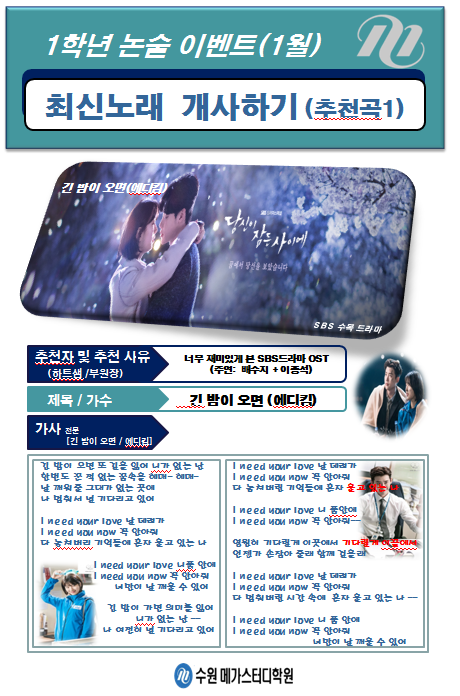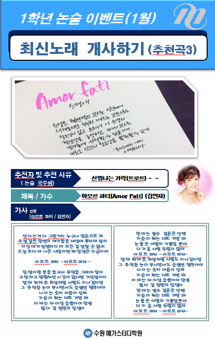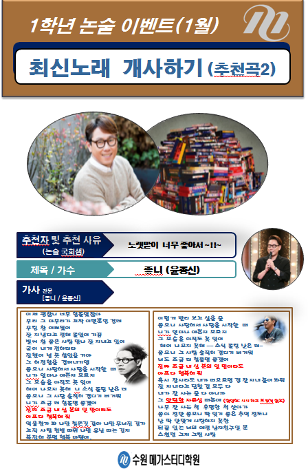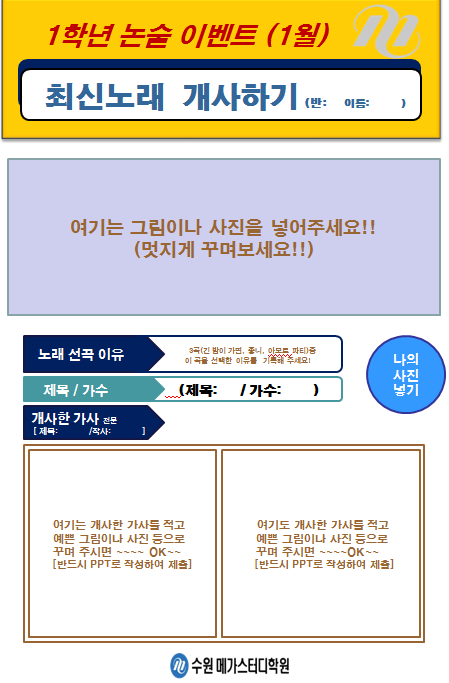 * 1월 논술 이벤트: 최신 노래 개사하기(ppt작성) [매달 별도의 이벤트 진행-반드시 PPT 제출]