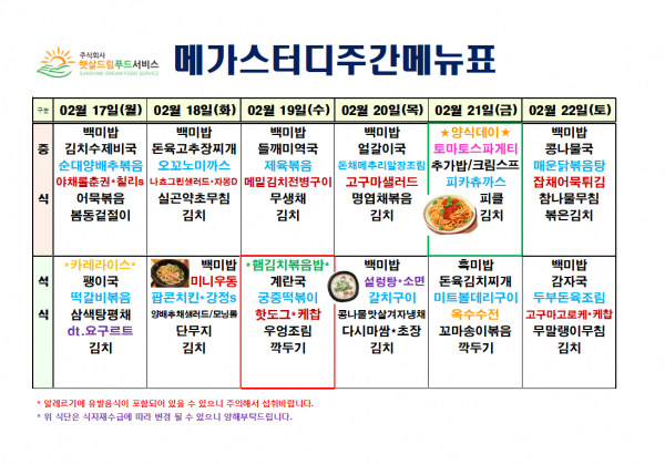 2월 3주차 식단표 (2/17~2/22)