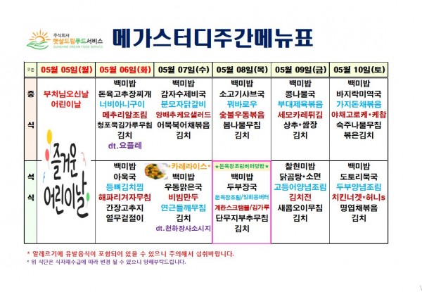 5월 1주차 식단표(5/6~5/10)