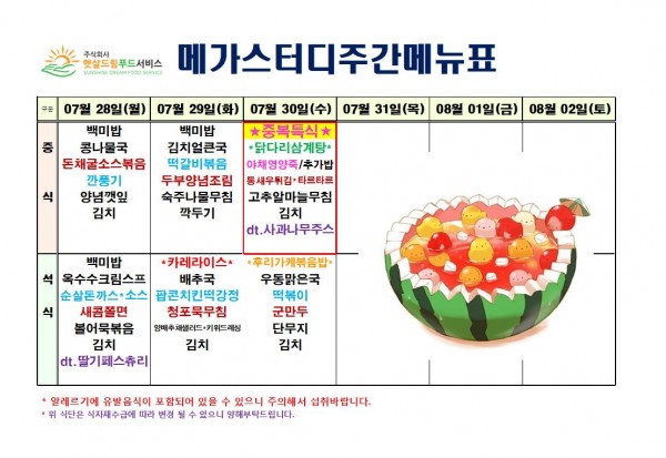 7월 5주차 식단표(7/28~7/30)