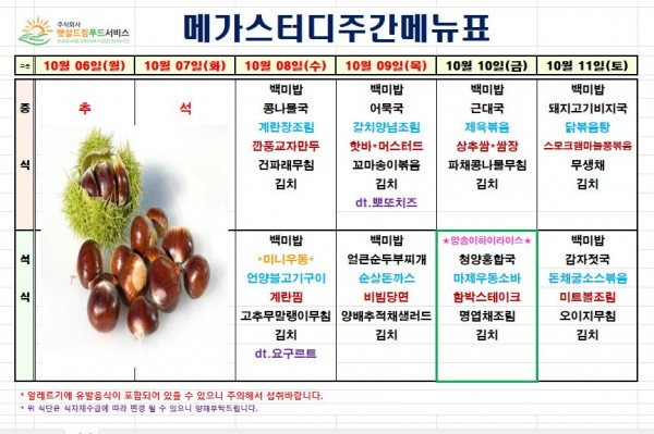 10월 1주차 식단표(10/8~10/11)