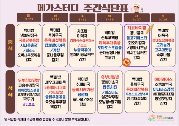 3월 4주차 식단표(3/23~3/28)